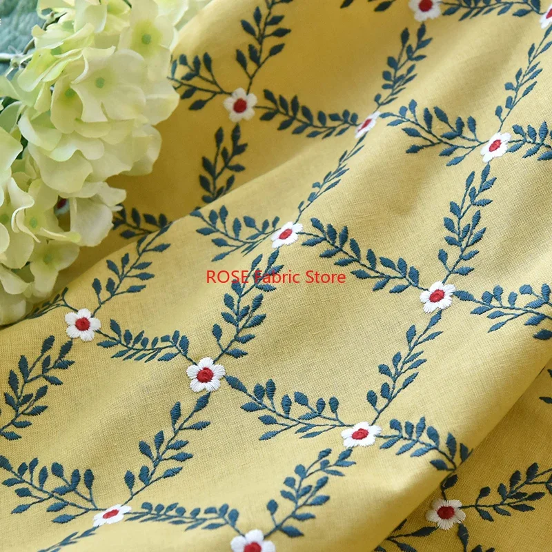 Хлопково-льняная ткань с 3D цветочной вышивкой для юбок, платьев, топов, крышек стола, дизайна костюмов, шитья аксессуаров для волос