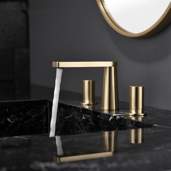 bathroom sink faucets brushed gold basin soild brass luxury lavatory mixer taps & cold deck mounted widespread