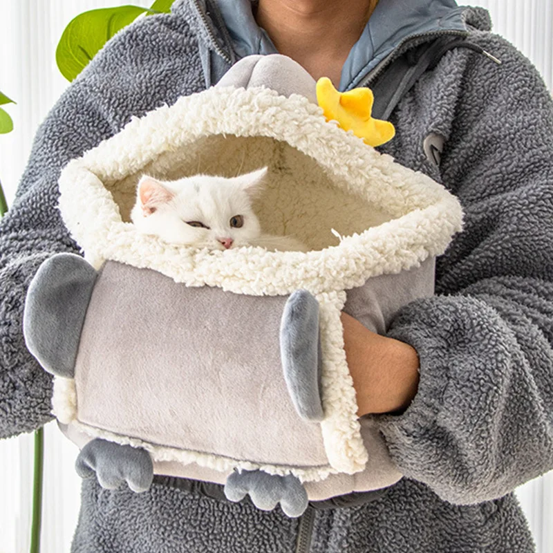 Теплая Сумка-переноска для домашних животных, маленький рюкзак для кошек и собак, зимняя мягкая плюшевая подвесная нагрудная сумка для путе...
