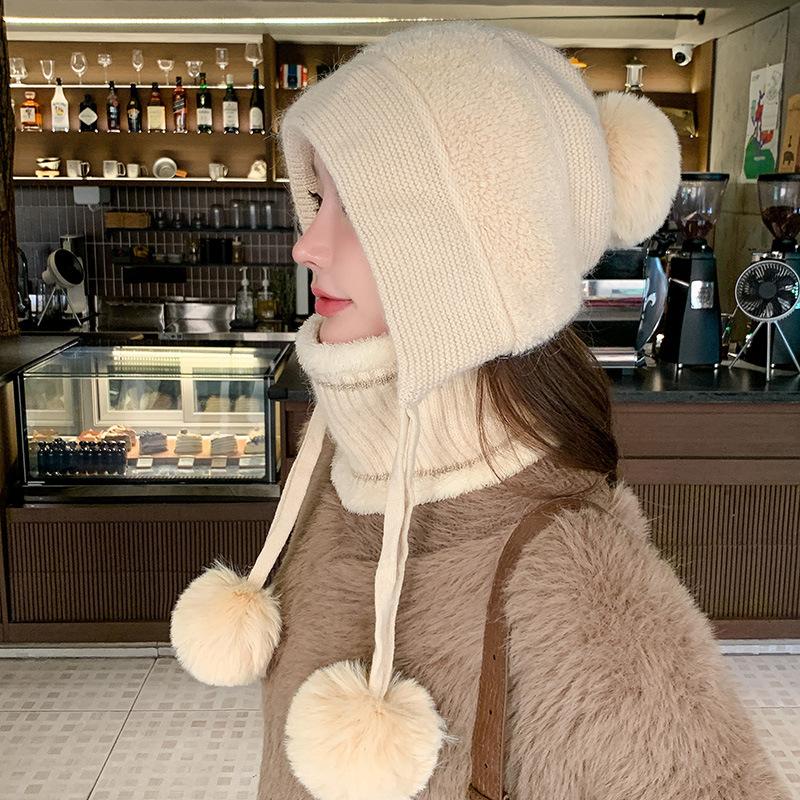 Теплая вязаная шапка из кроличьего меха, зимний женский шарф для защиты от холода, плюшевая толстая защита ушей, шапка-пуловер для лица, шерстяная шапка separate hat (without scarf)
