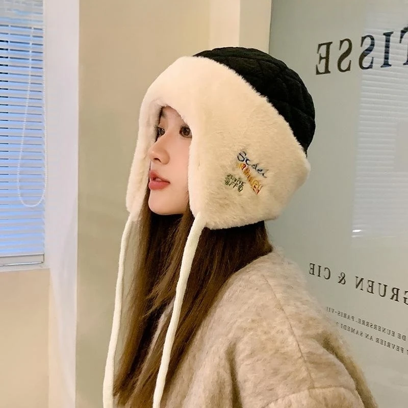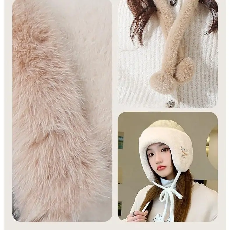 Теплая плюшевая шапка для женщин и девочек, зимняя утепленная шапка, шерстяная шапка с защитой ушей, имитация кроличьего меха, вязаная повязка
