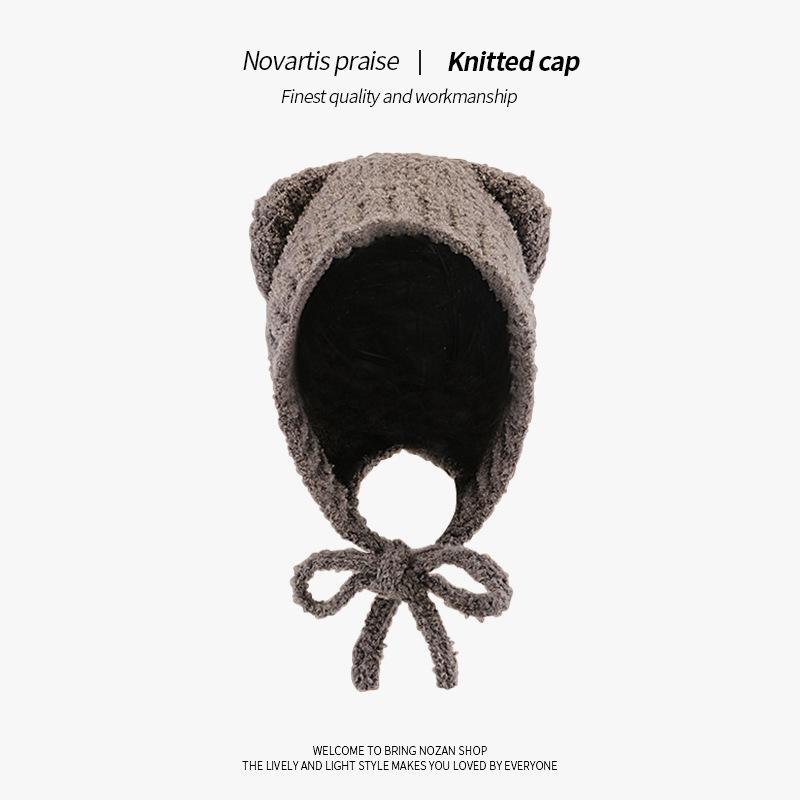 Теплая плюшевая шерстяная шапка-бини с мягкими медвежьими ушками - Уютная зимняя шапка One Size