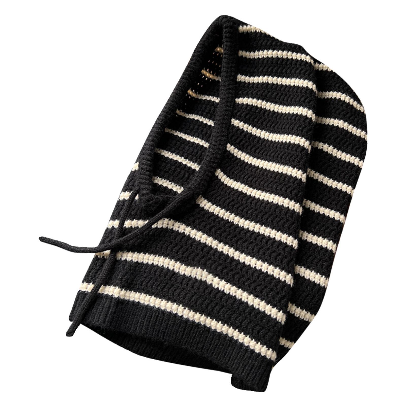 Теплая полосатая балаклава, вязаный крючком капюшон-шарф-шапка для катания на лыжах, пеших прогулок, универсальная женская ветрозащитная шаль-шапка с защитой шеи чёрный