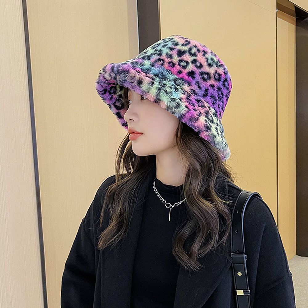 Теплая разноцветная леопардовая плюшевая уличная шапка из искусственного меха, корейские рыболовные шапки, женские панамы разноцветный