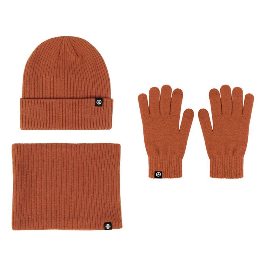 Теплая флисовая шапка-бини, шарф, перчатки, мягкий шарф для шеи, подарки, зимний набор для холодной погоды Orange