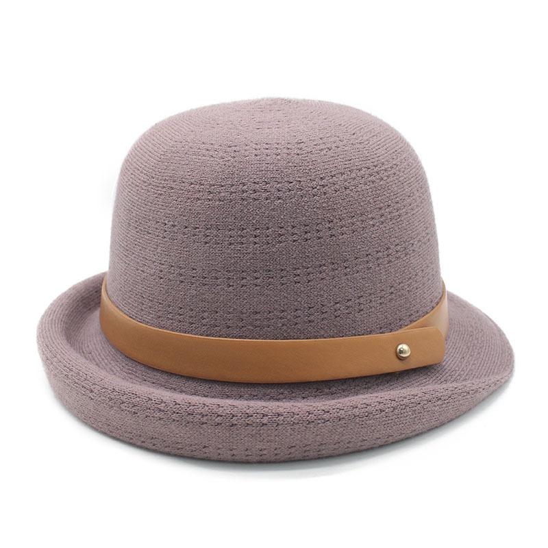 Теплая шапка в иностранном стиле, универсальная, женская шляпа от солнца, шляпа-ведро в иностранном стиле, кожаная шляпа-ведро с пряжкой, складная M(56-58cm) светло-фиолетовый