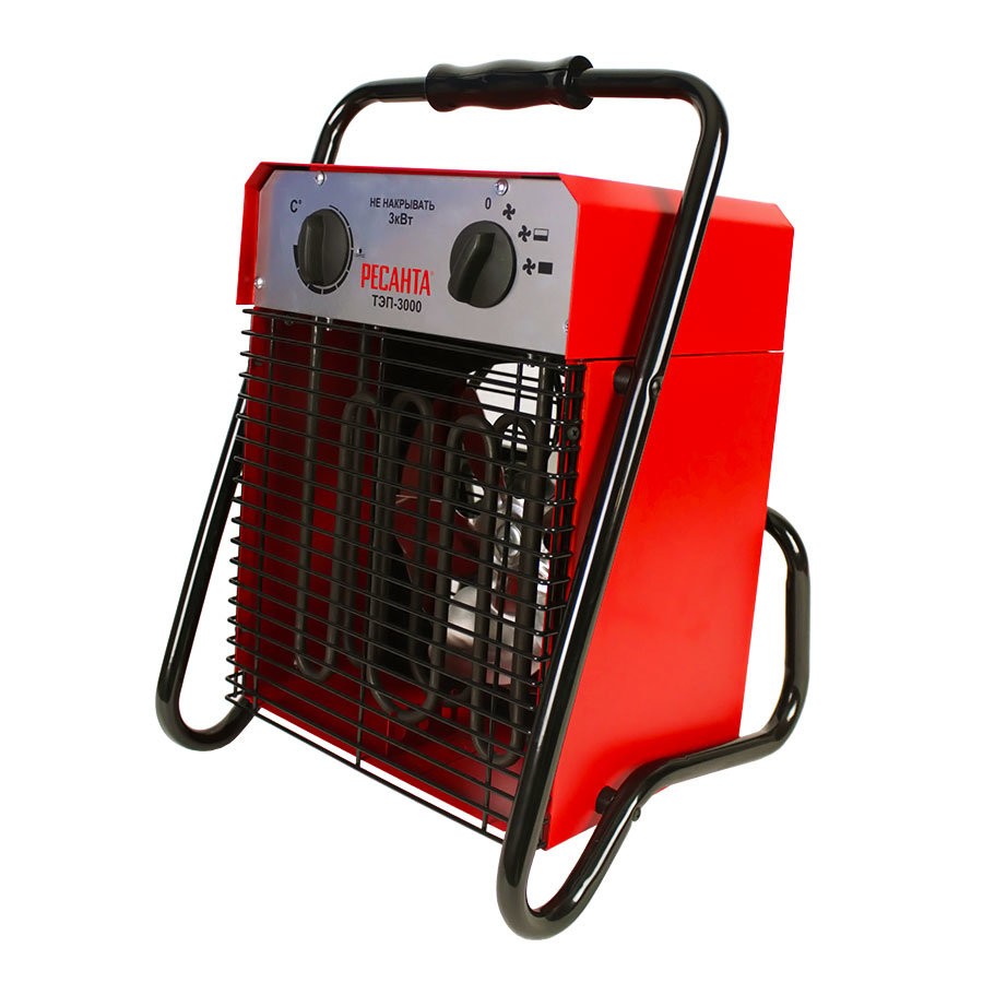 Тепловая пушка электрическая 3 кВт, 400 м³/час, 220/230 В, РЕСАНТА ТЭП-3000 (67/1/2), Красный, ТЭП-3000