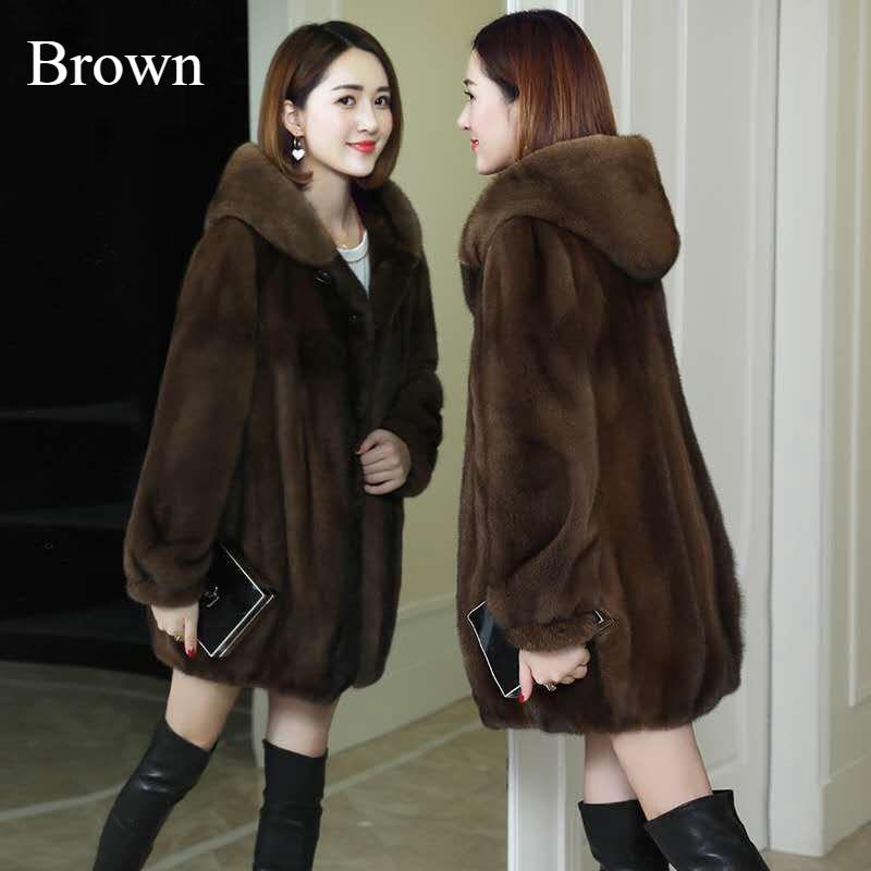 Теплое пальто с капюшоном, осенне-зимнее, норковое бархатное пальто, женское, толстое, свободное, средней длины, пушистое, модный стиль, черный топ XL коричневый
