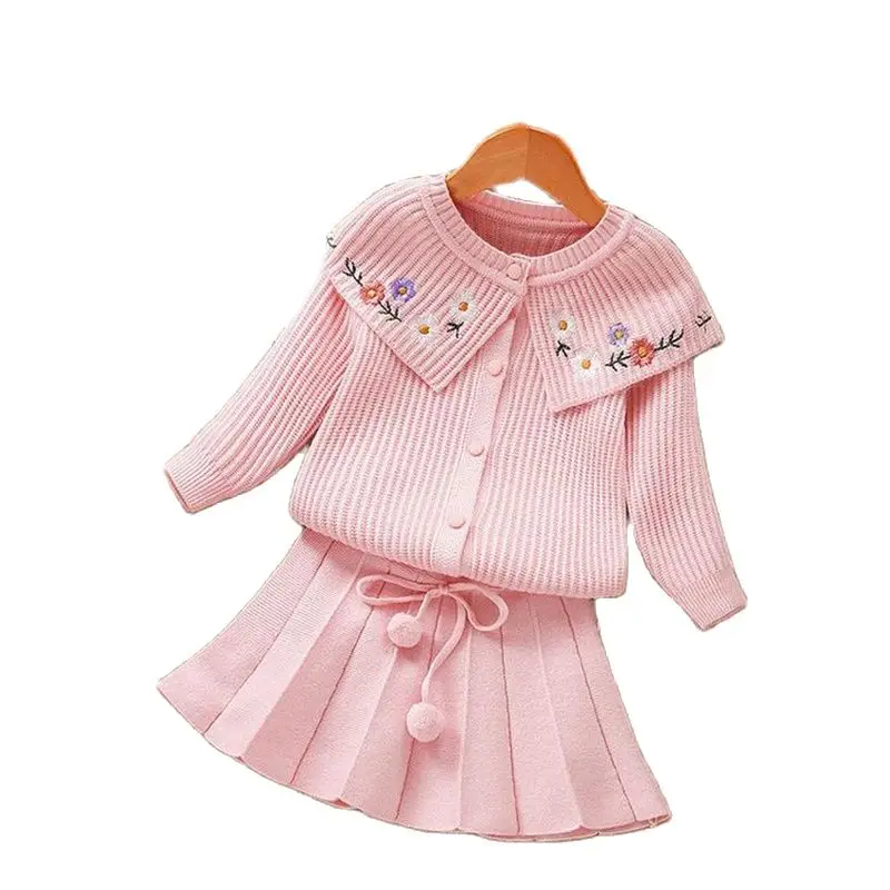 Теплое платье для новорожденных девочек Корейский стиль милые цветы Осень Зима вязаная одежда свитер для малышей + юбка 2 шт. платья для дево...