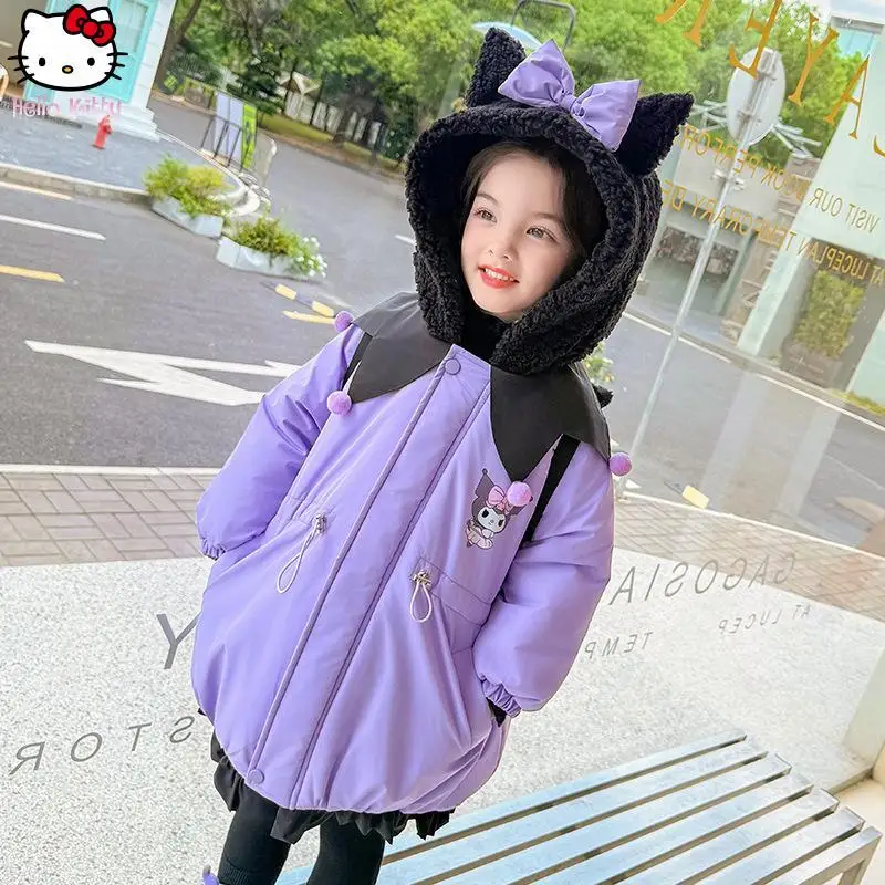 Теплое хлопковое пальто с капюшоном и бантом для девочек, осеннее и зимнее пальто с героями мультфильмов, новая утолщенная длинная хлопковая куртка в стиле аниме, модное пальто