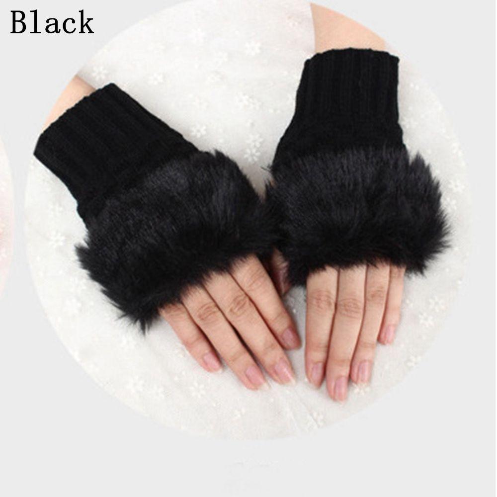 Теплые вязаные перчатки без пальцев из овечьей шерсти, с открытыми пальцами и запястьем, из искусственного кроличьего меха, для пар, митенки без пальцев
