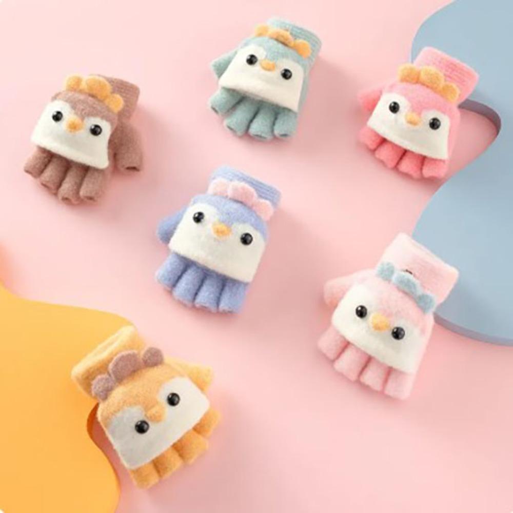 Теплые вязаные перчатки без пальцев, плюшевые детские зимние перчатки с половиной пальца