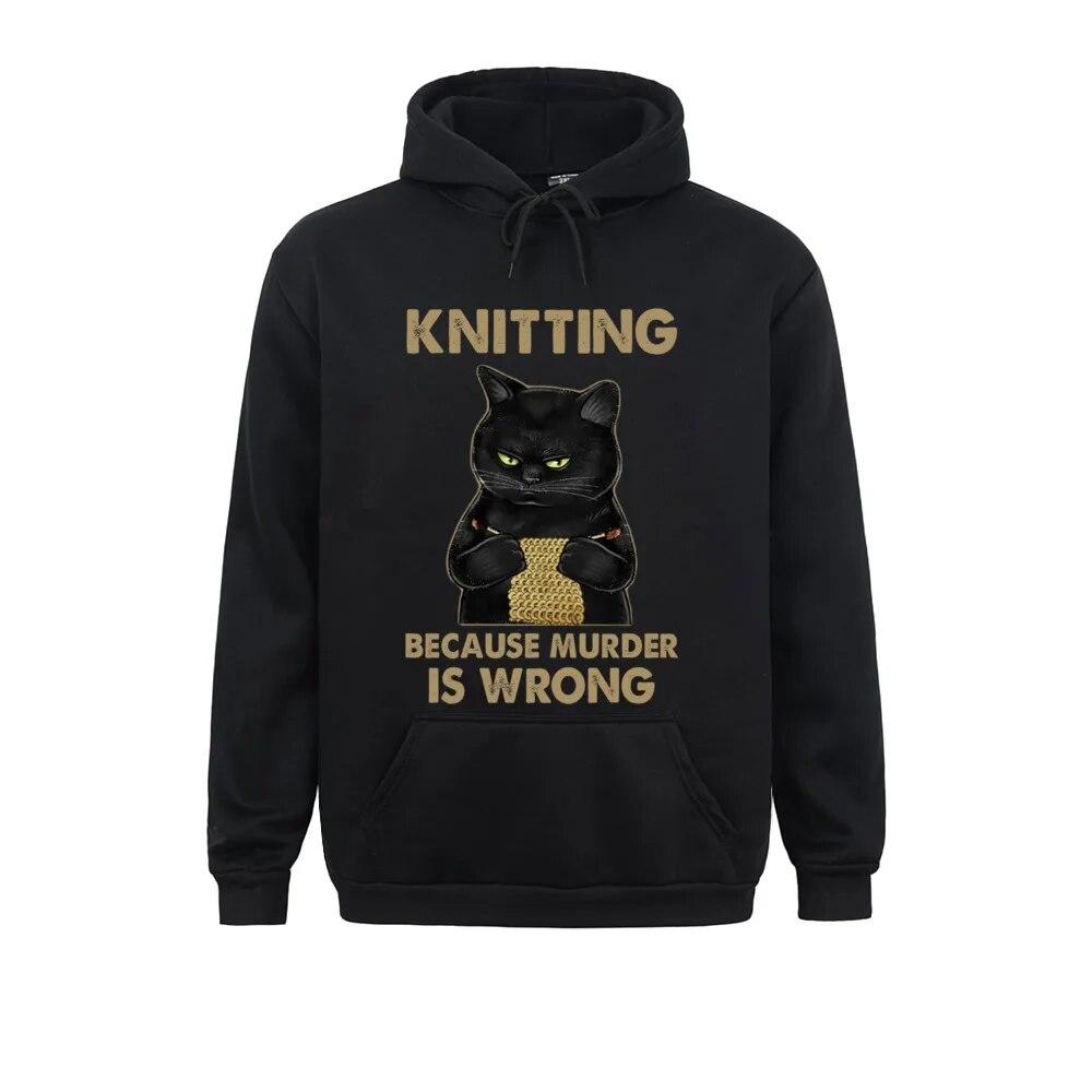 Теплые зимние толстовки с забавным котом «Вязание потому, что убийство неправильно» с длинными рукавами, толстовки унисекс, осенние капюшоны с длинными рукавами