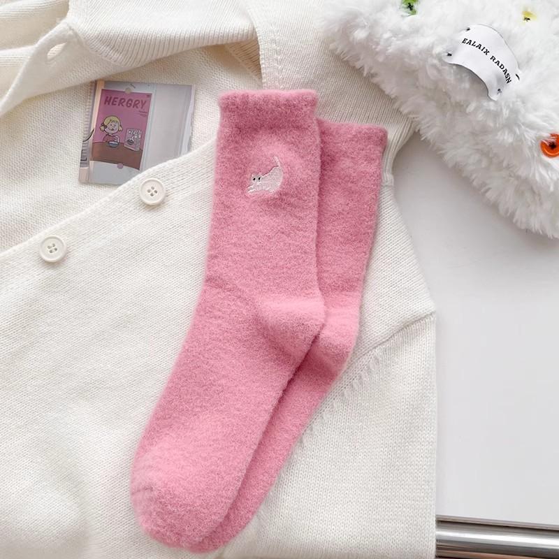 Теплые носки из норки, супермягкие, женские, Ins Cat, однотонные, зимние, теплые, толстые, коралловые, плюшевые, носки, термобелье, для сна, дома