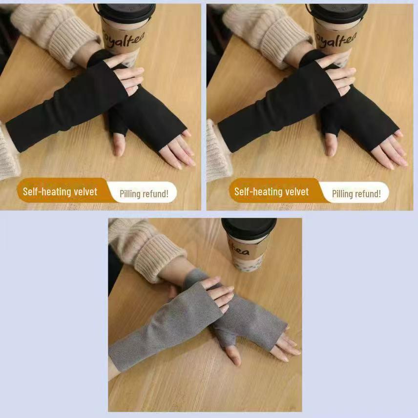 Теплые перчатки из немецкого бархата с полупальцами для осени/зимы – самонагревающиеся, стильные, идеально подходят для студентов null чёрный