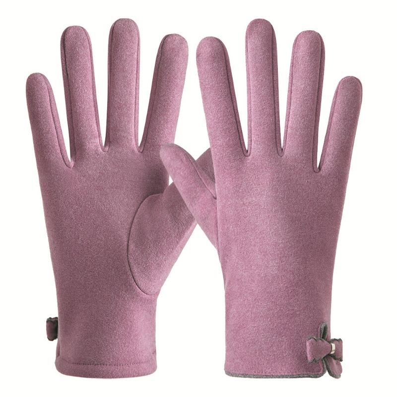 Теплые перчатки осень и зима женские милые с бантом флис утолщенный немецкий флис электромобиль ветрозащитные перчатки с сенсорным экраном one size fits all фиолетовый