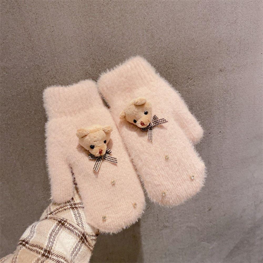 Теплые студенческие вязаные перчатки, варежки с полными пальцами, милые перчатки, японский бант, плюшевые перчатки, для вождения E