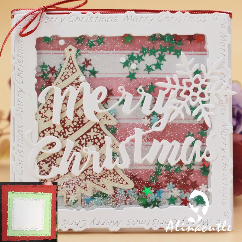 Die Cut Metal Cutting die Merry Christmas Edge Square Frame Scrapbooking Paper Craft Handmade Card Punch Art Cutter Alinacutle