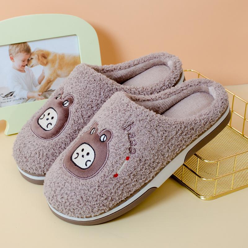 Теплые хлопковые тапочки для дома, для пары, утолщенные, нескользящие, милые плюшевые, осенне-зимние тапочки для послеродового периода 44-45 кофейный