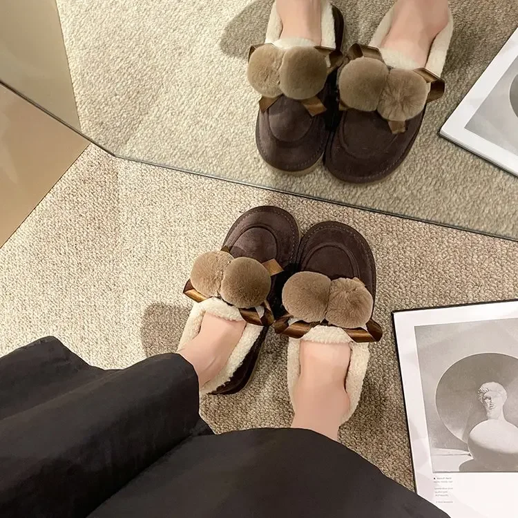 Теплые хлопковые тапочки с защитой от меха, обувь на платформе, мягкая плюшевая обувь на платформе, женская домашняя модная удобная обувь на плоской подошве, 2023