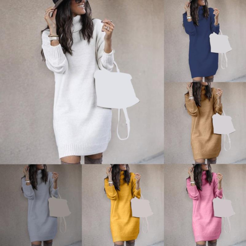 Теплый вязаный свитер, женский свитер, платье, вязаная мягкая вечеринка, облегающая элегантная водолазка