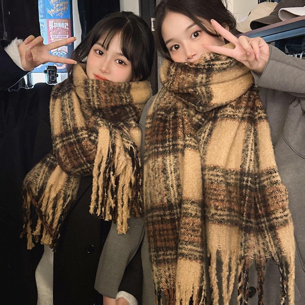 Термальный теплый женский шарф для шеи, толстая шаль с кисточками, пара зимних шарфов