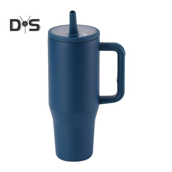 Термокружка из нержавеющей стали объемом 40 унций с откидной трубочкой, герметичная, изолированная, с ручкой для путешествий, для дома, офиса, автомобиля 1200ml темно-синий