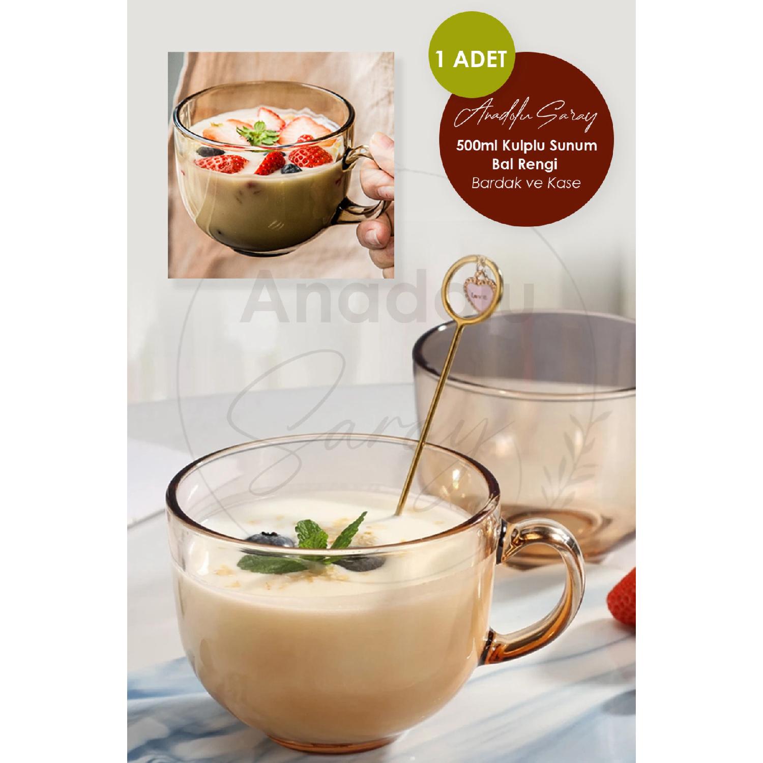 Термостойкая боросиликатная стеклянная чаша медового цвета на 500 мл. Стеклянная чаша для кофе и презентаций на 500 мл.