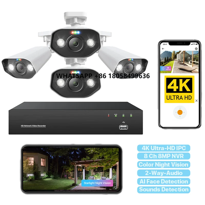 High Quality 8 Ch Outside PoE 8MP AI Human Detection Camra AI Human Detection Color Night Vision Security Camra System