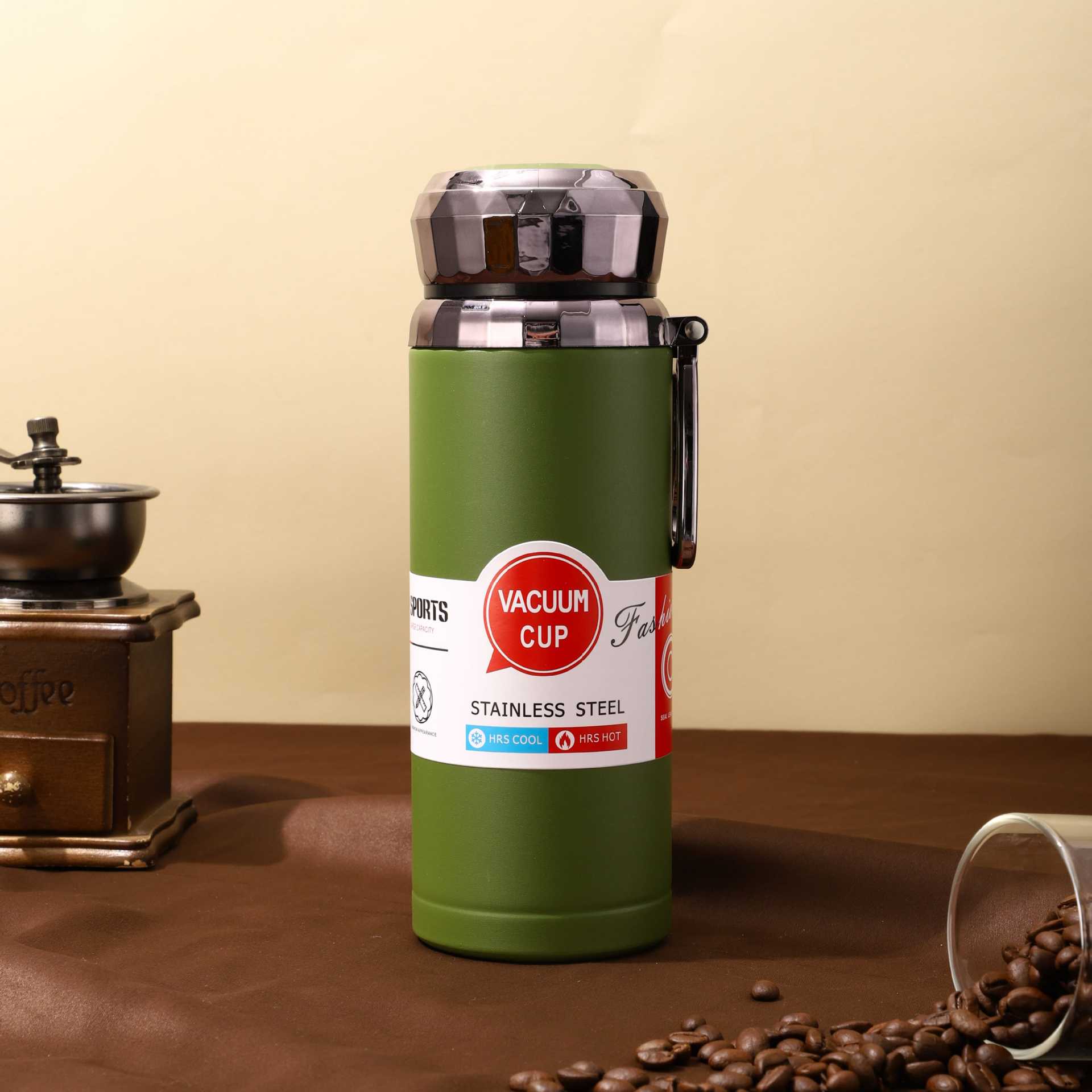 Термос из нержавеющей стали 316 для разделения чая, большая емкость, дорожный походный котелок с веревкой для переноски, портативная спортивная бутылка 600ml зелёный