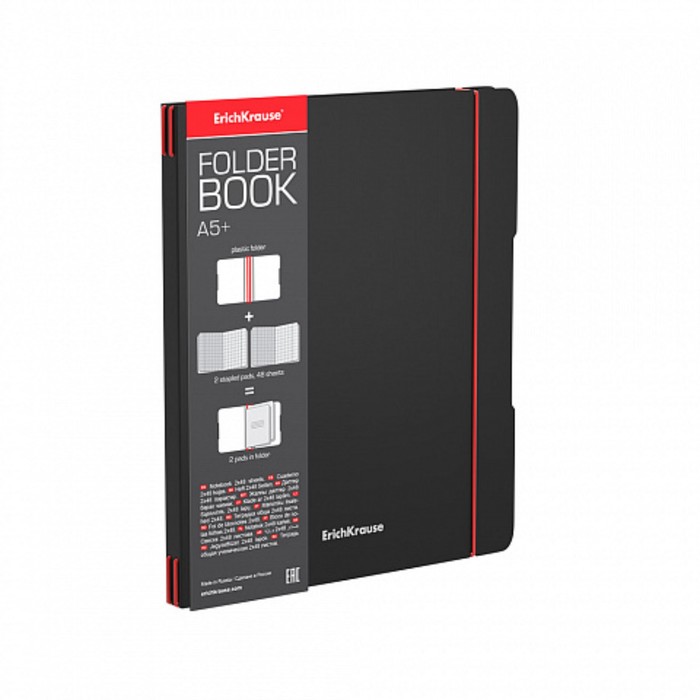 Тетрадь А5, 96 листов в клетку ErichKrause "FolderBook Accent" на резинке, съемная черная пластиковая обложка, блок офсет, белизна 100%