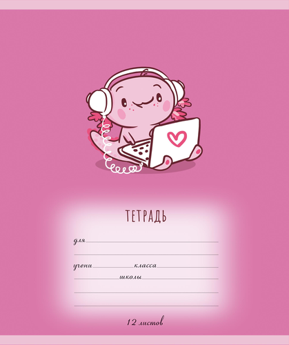 Тетрадь ученическая ПЗБМ Аксолотль Клетка 12 л 1 шт обложка в ассортименте