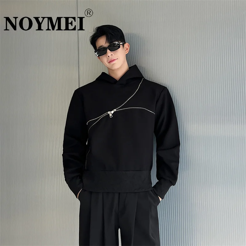 NOYMEI Korean Style Niche Metal Zipper Design Hooded Pullover Solid Color Fashionable 2023 Autumn New Sweatshirt WA2544