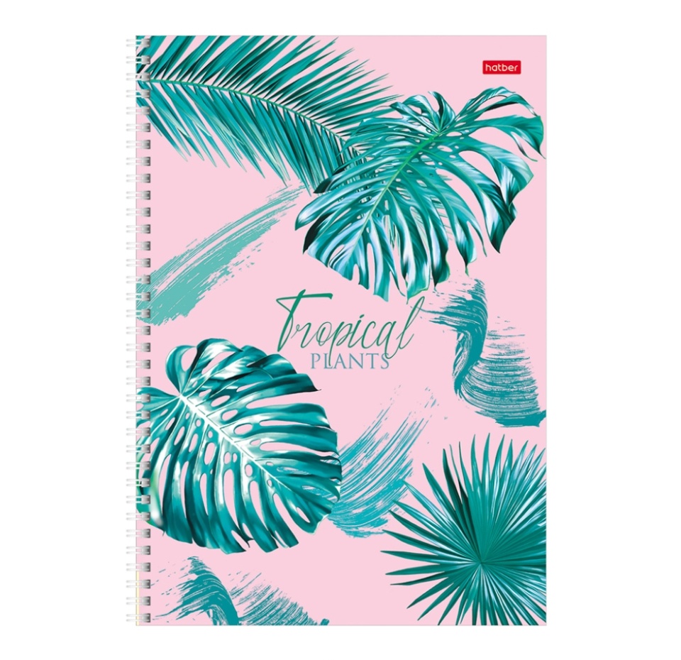 Тетрадь HATBER 96л А4ф клетка 65г/кв.м на гребне 4 диз.в блоке серия - Тропические листья - Россия