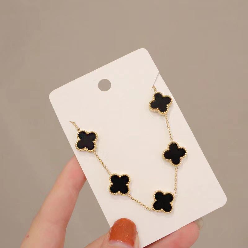 Титановая сталь Не теряет цвет Браслет «Четырехлистный клевер» Браслет «Пять цветков» Женский Ins202 Новая сетевая красная бижутерия чёрный
