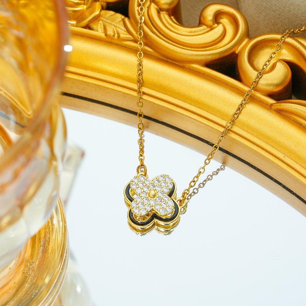 Титановая сталь Ожерелье с бриллиантом в виде четырехлистного клевера - Вращающееся, в европейском и американском стиле, простая универсальная цепочка для ключицы.
