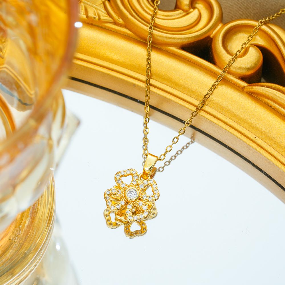 Титановая сталь Сердце Четырехлистный клевер Вращающееся ожерелье - Женская легкая роскошная универсальная цепочка для ключицы