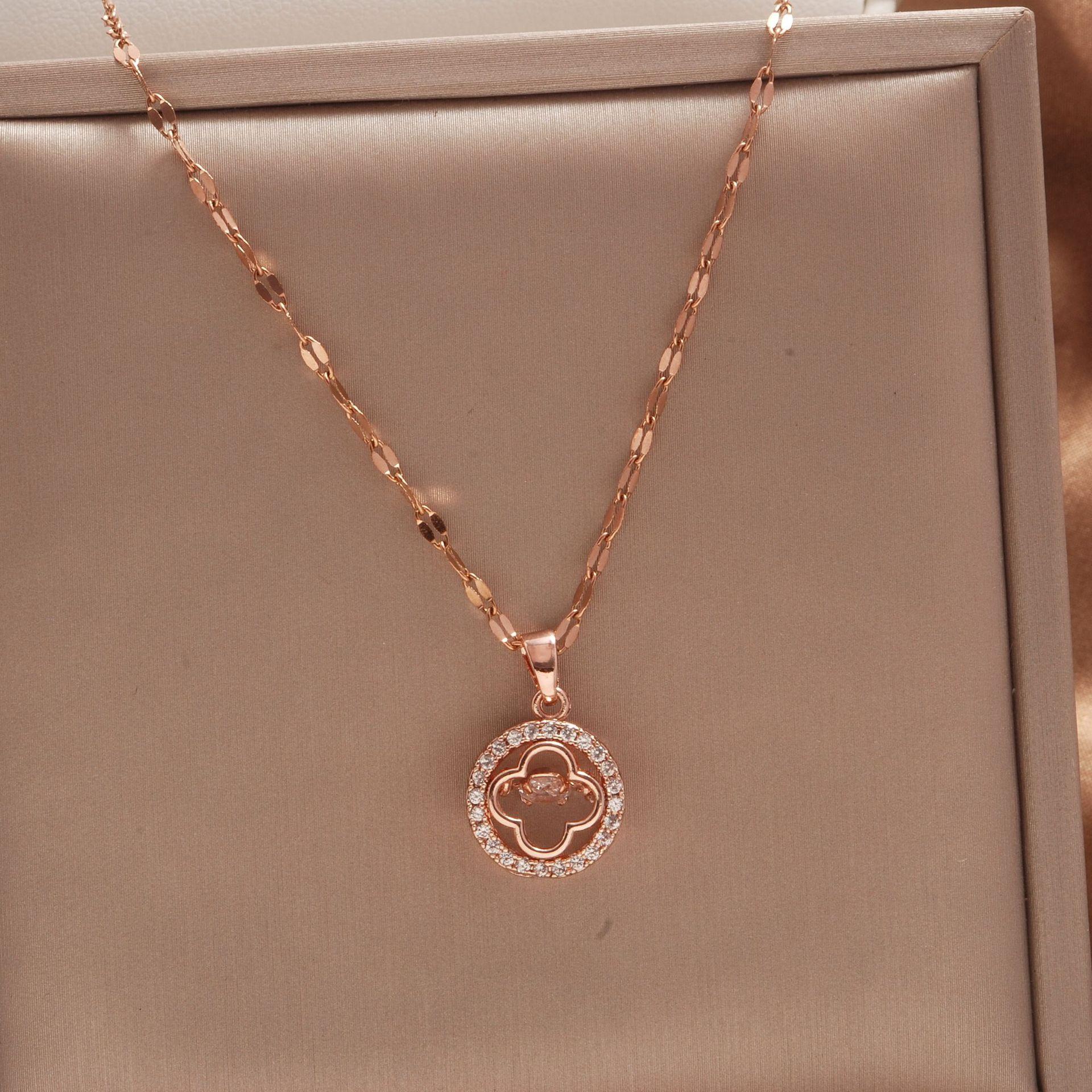 Титановая сталь не теряет цвет, круглое ожерелье с четырьмя листами клевера, женская простая модная цепочка на ключицу розового золота