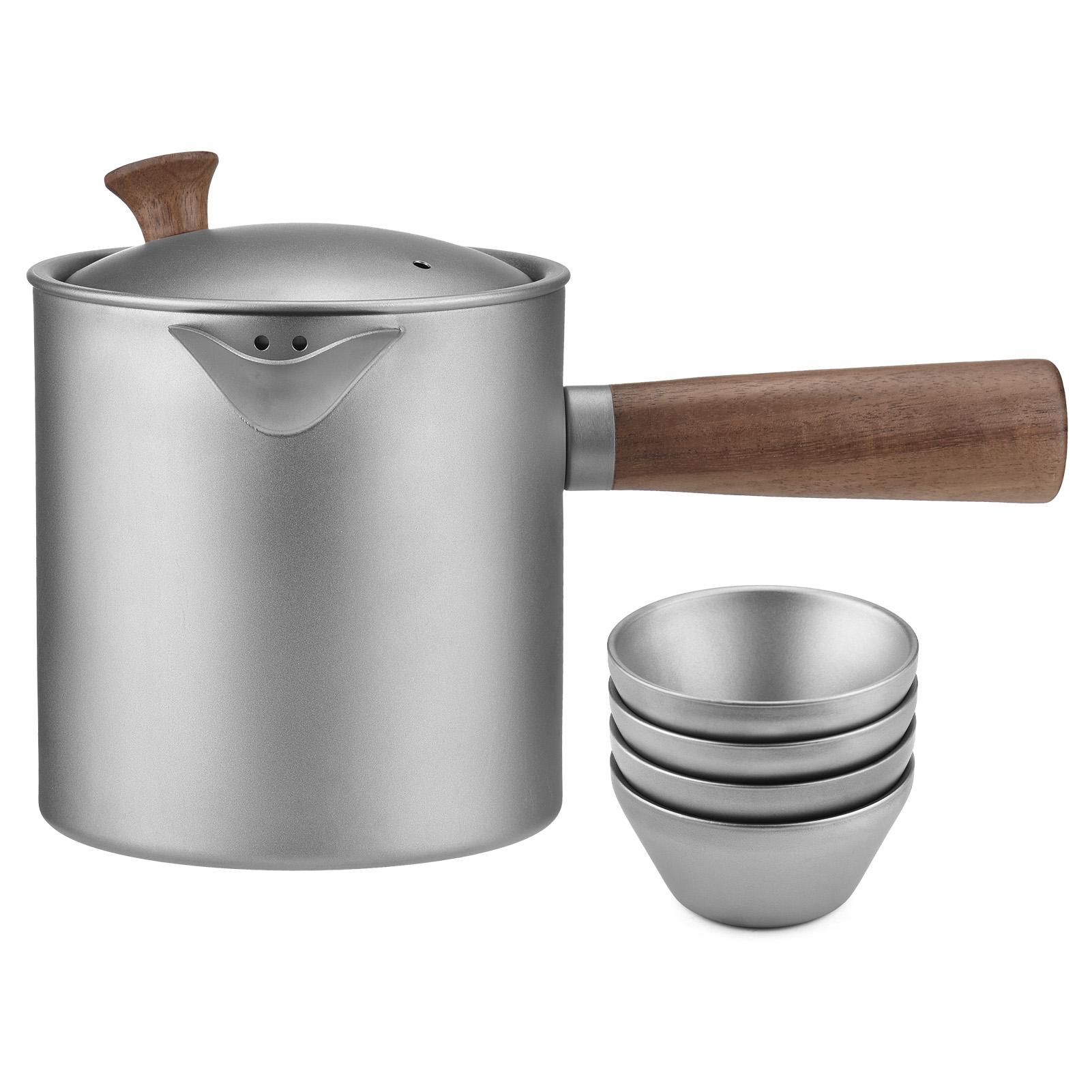 Титановый чайник с деревянной ручкой, портативный заварочный чайник с ситечком для кемпинга, походов