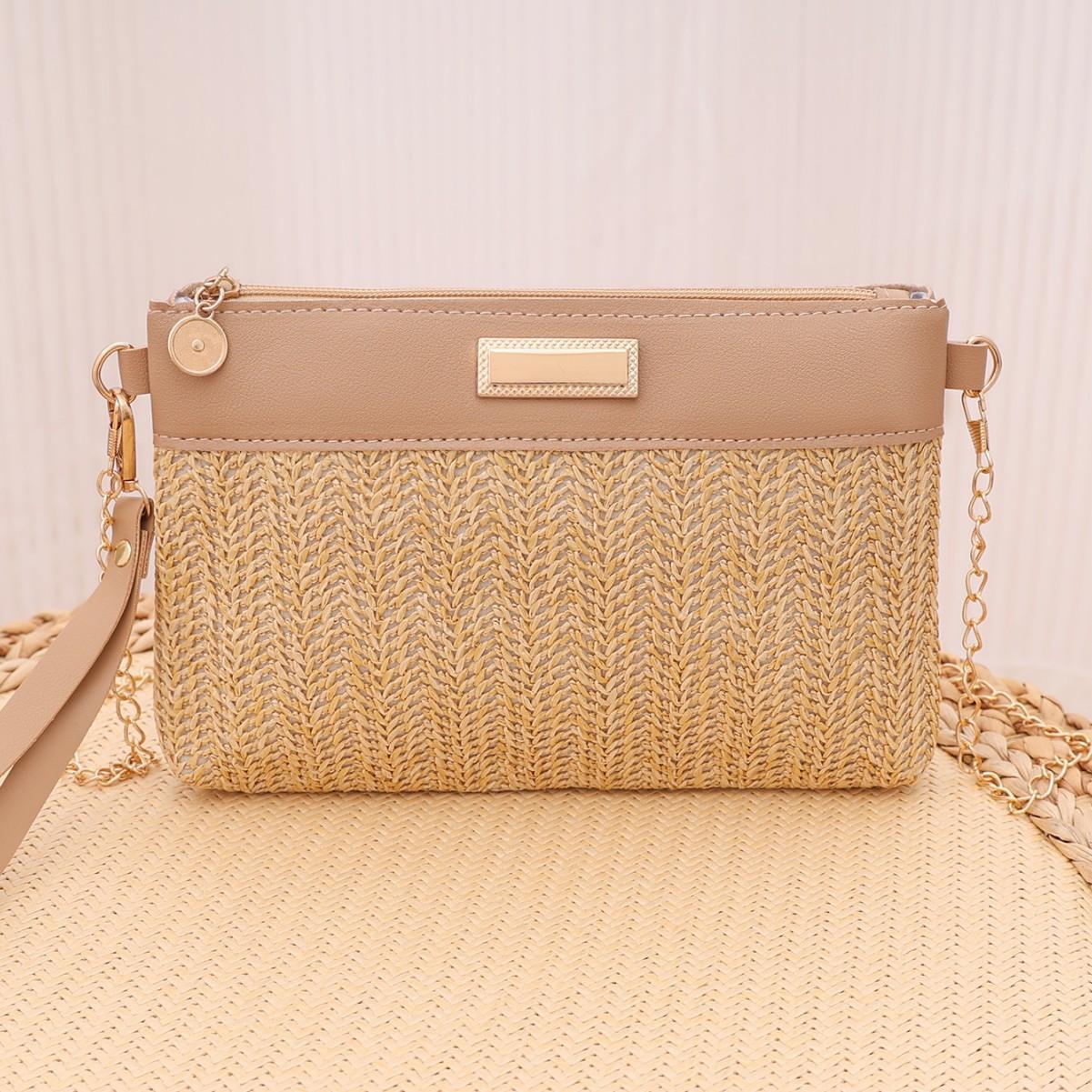 Тканая маленькая квадратная сумка весна-лето 2025 новая цепочка кроссбоди на плечо модная сумка в руке абрикосовый