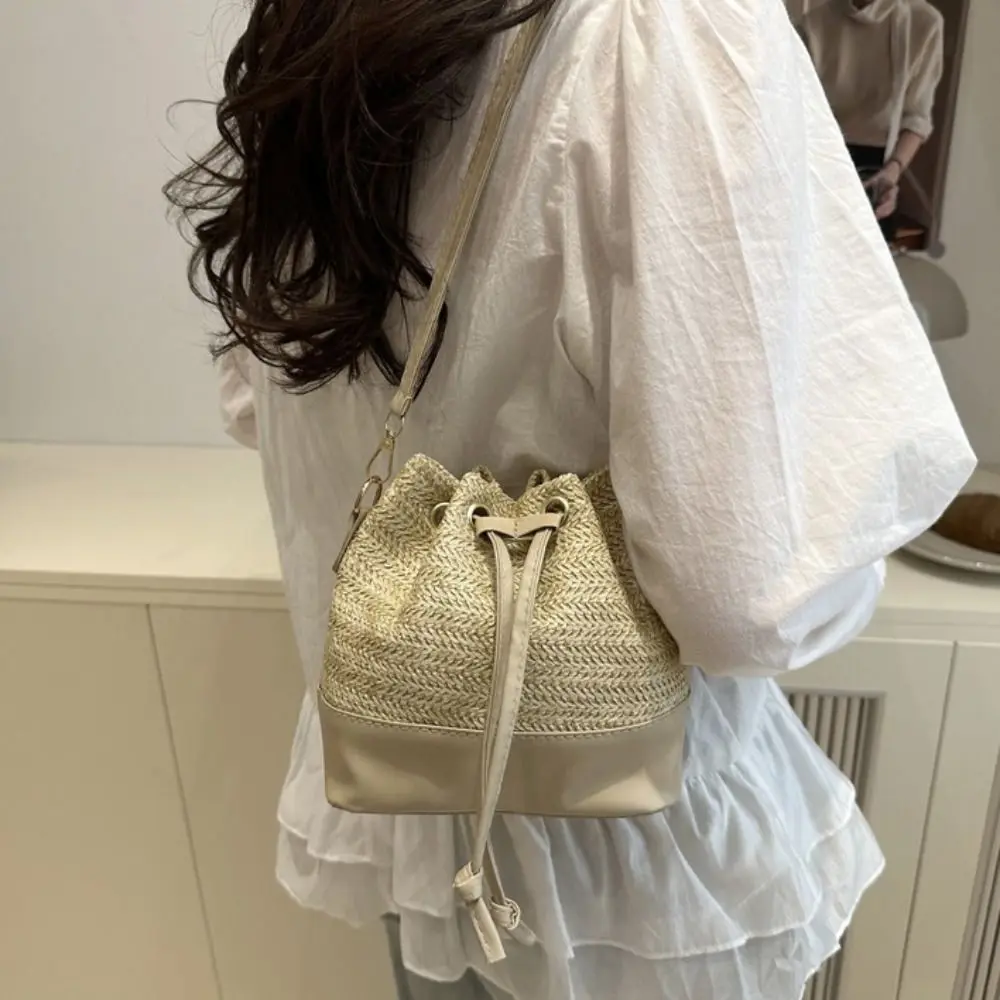 Тканая сумка из рафии в богемном стиле, мобильная сумка, плетеная соломенная сумка через плечо, пляжная сумка, сумка на плечо, летняя сумка-ведро на шнурке
