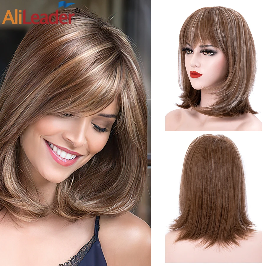 Synthetic Short Gradient Gray Women's Wig Naturally Fluffy Layered High-Quality Adjustable Size women's Wig With Bangs