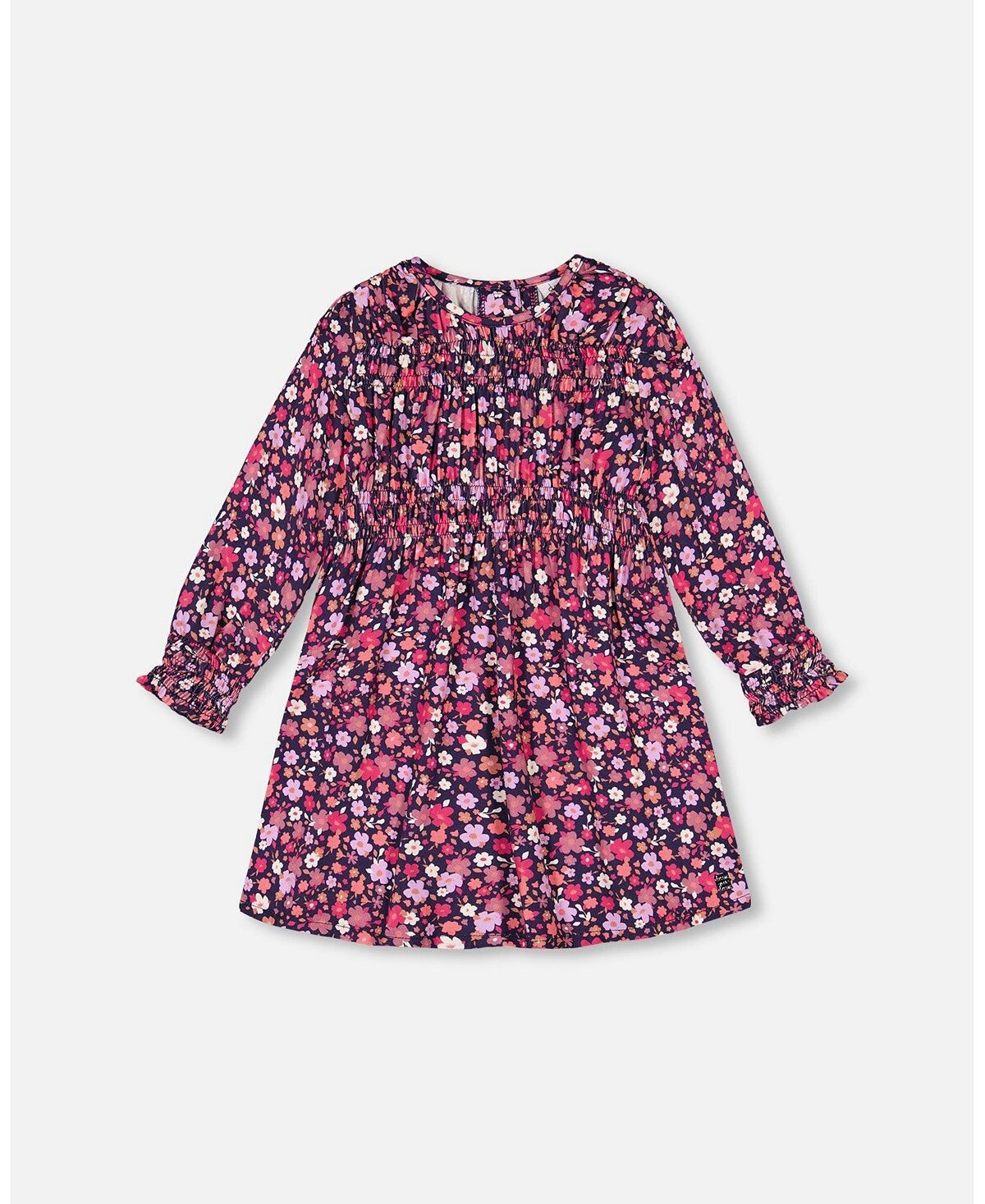 Тканое платье с принтом для девочек и пышными длинными рукавами, темно-синее, с яркими цветами - для детей Deux par Deux
