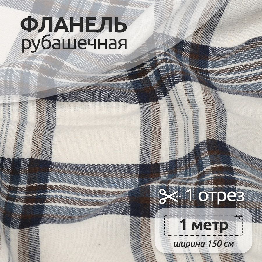 Ткань Фланель Ткани Magok рубашечная 1,5 х 1 м 150 г/м2 белый, клетка, Фланель коллекция