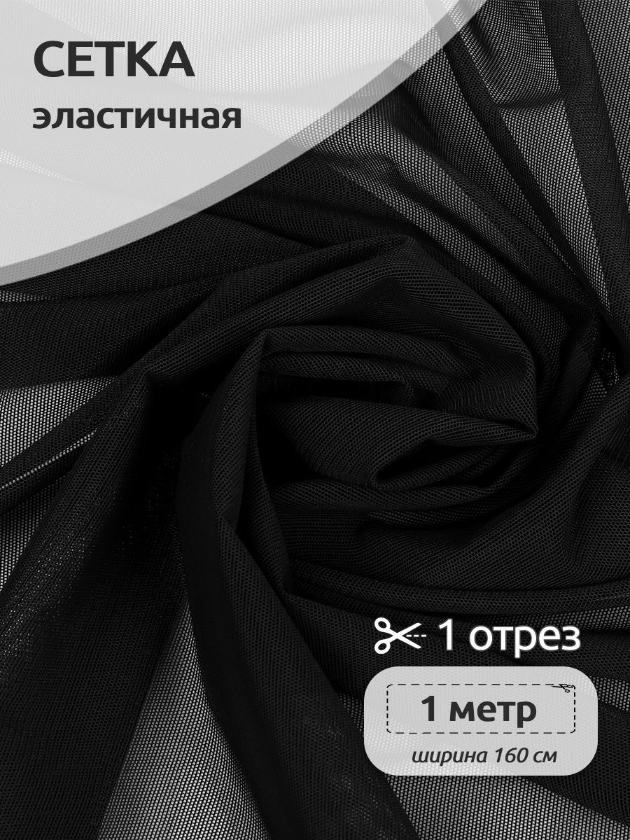 Ткань для шитья и рукоделия Сетка эластичная, 80 г/м2, 160 см х 100 см, черный, TBY.068.3090.1.MAG.KOLL.75354