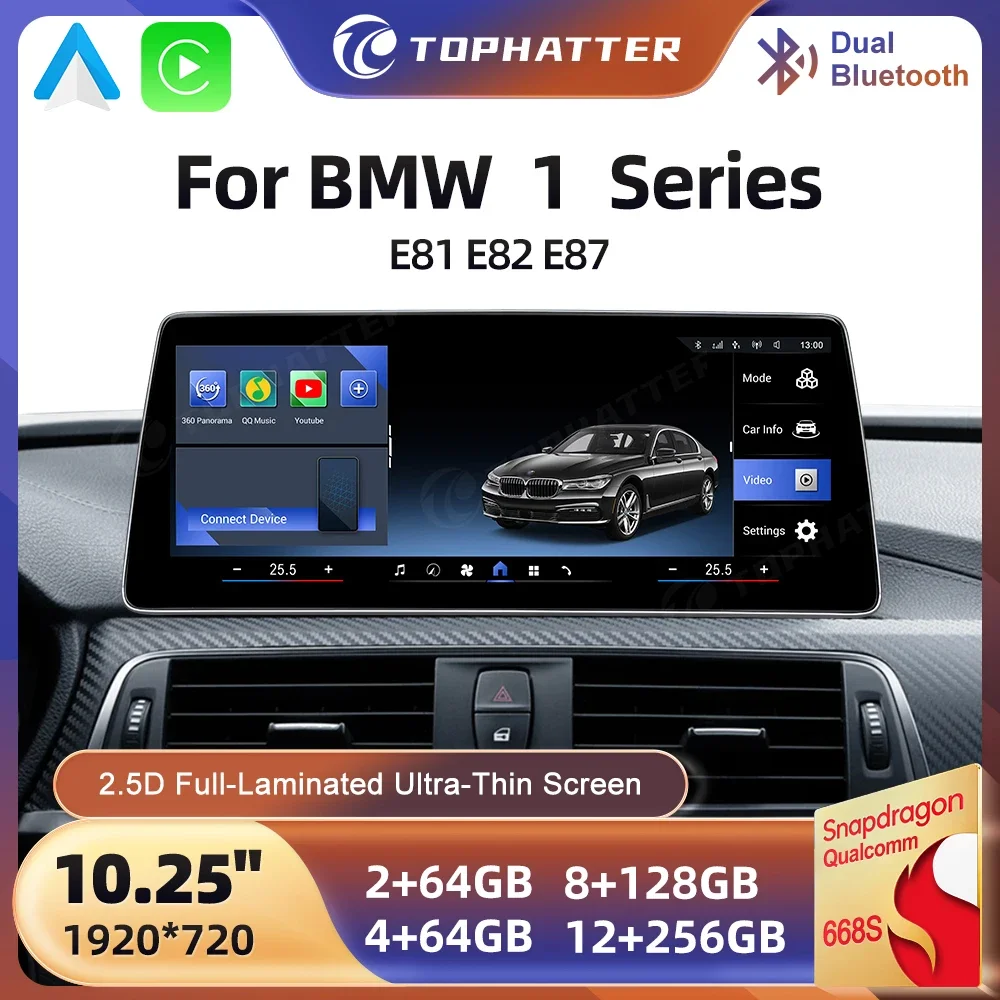 10.25" Android CarPlay for BMW 1 Series E81 E82 E87 2K HD ScreenPlayer Car Stereo GPS Multimedia