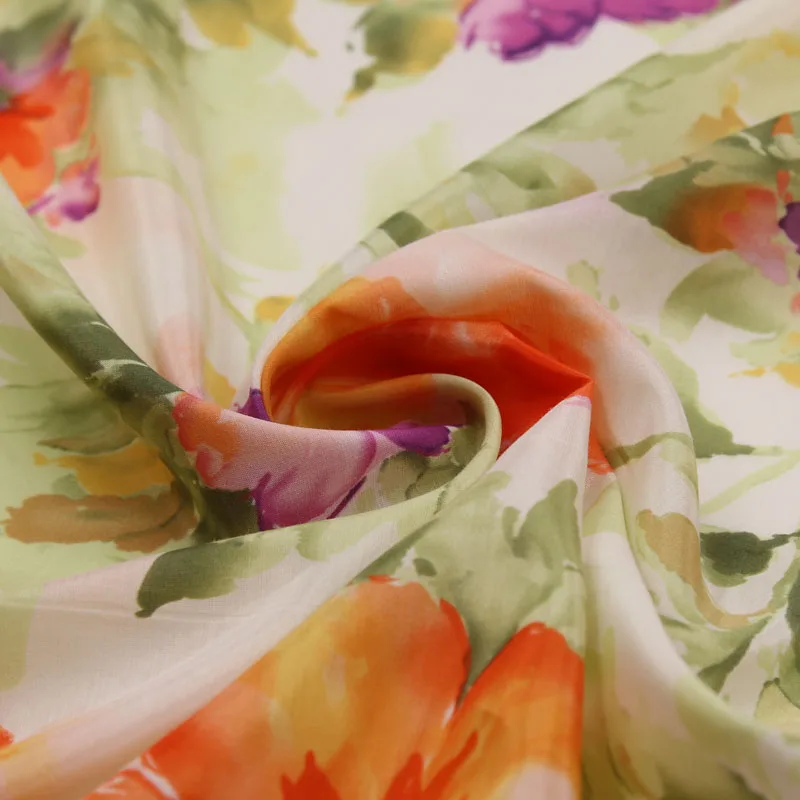 Ткань из смешанного шелка и хлопка с цветочным принтом; Очень хорошее качество; Толщина 16 момм; SCT687