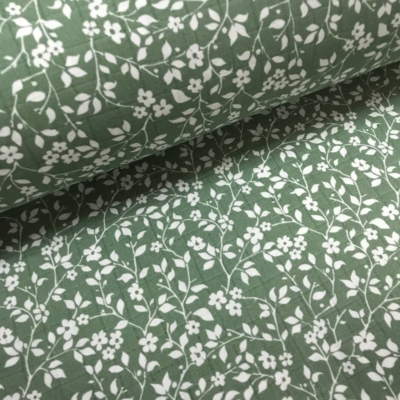 Ткань муслин Двухслойная белые цветочки на зеленом (шир. 1,7 м) (MS-S-0209), Разные цвета