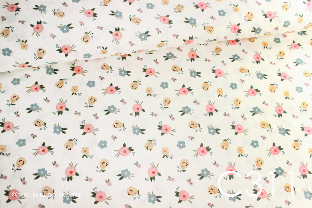 Ткань сатин Мелкие розочки на молочном, Разные цвета