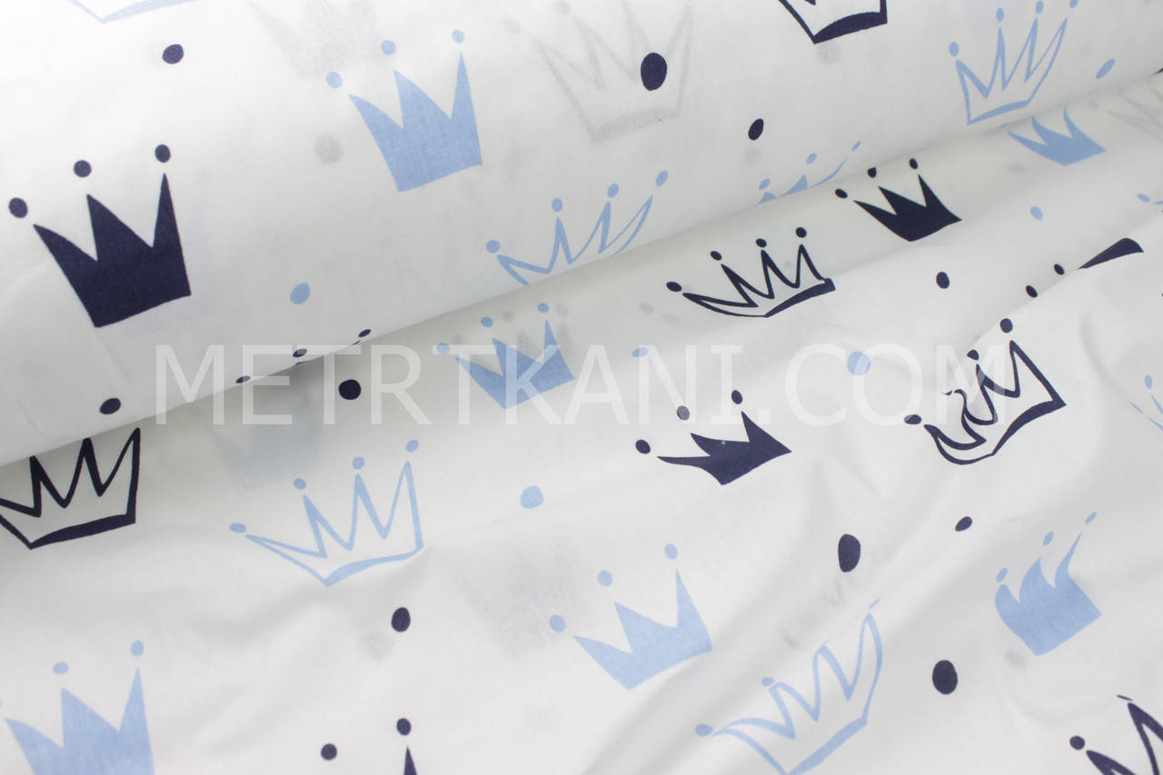 Ткань хлопковая "Короны" голубые и синие на белом №1021, Синий